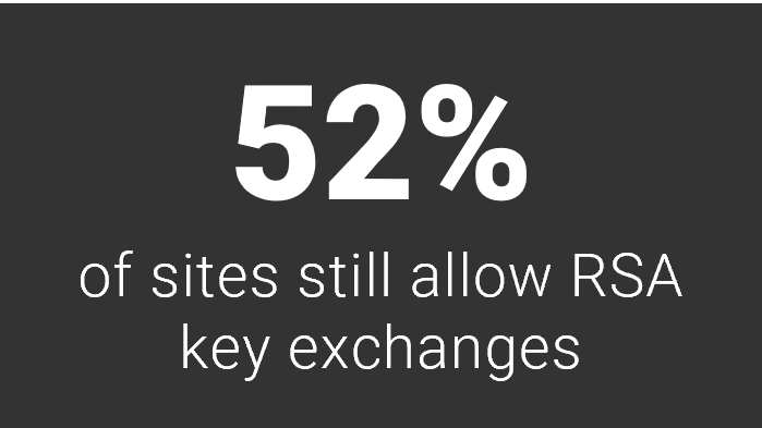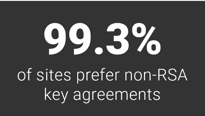 While more than 99% of servers in the top million prefer the use of Diffie-Hellman or elliptic curve Diffie-Hellman key agreements, 52% still allow the use of RSA key exchanges, should that be all the client supports.