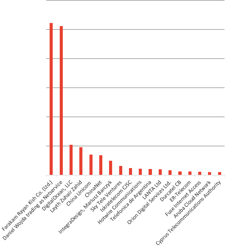 The ASN that launched the most attacks from these top 50 IP addresses is AS56815, which belongs to Farakam Rayan Kish Co, an Iranian Telecom/ISP provider. Virtually all of the IP addresses on the list are identified in a Shodan search as MikroTik bandwidth test servers, which we believe to be a bandwidth testing app on consumer MicroTik routers. The use of MicroTik routers in the Reaper and VPNFilter thingbots has been widely reported. Attacks against these devices are covered in our top 20 attacked IoT ports, specifically 8291, shown in Figure 5.