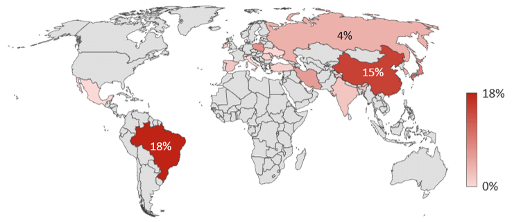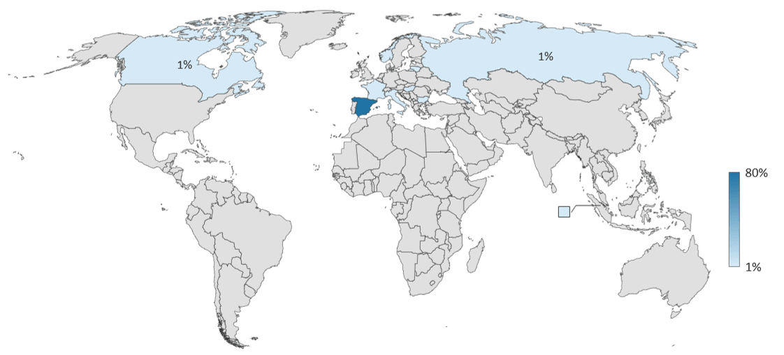 7 | Colombia | 4% | Finland | <1% | Canada | 2% | France | 1% |
