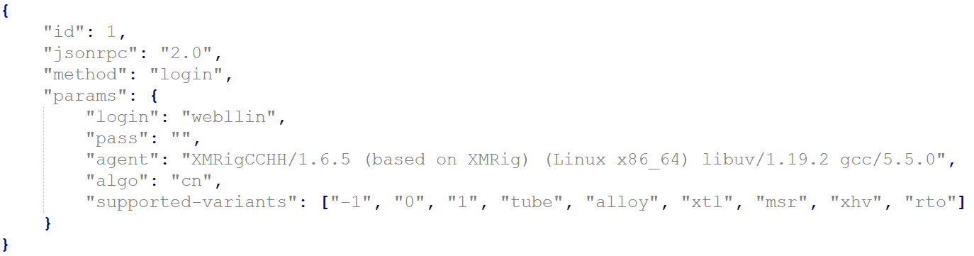 Once resolving the pool’s domain, the attacker checks into the mining pool: