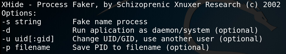 More interesting is the “H” file, which is an old XHide tool for launching executables with a fake process name.