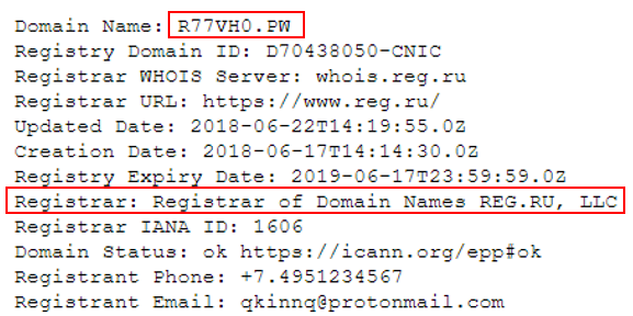 Figure 16: Palau (.pw) domain name registered by reg.ru