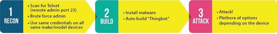 When F5 Labs and Loryka started their Hunt for IoT, they did so with a focus on the attacks that come before The Attack. These are the attacks on vulnerable “things” (IoT devices) that then make them compromised things. Once compromised, (often through an open Telnet port) they are assimilated into the collective and become a thingbot—a botnet built exclusively from compromised devices. This process is actually pretty straightforward as illustrated by our researchers in “The Hunt for IoT Volume 3: The Rise of Thingbots:”