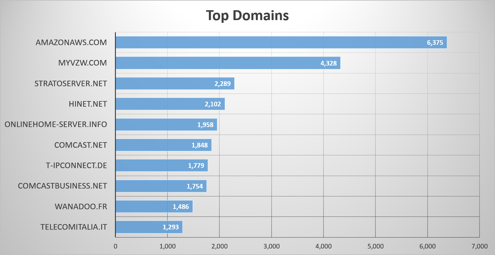 Figure 2: Top domains in a Shodan search for CVE-2014-0160 on January 22, 2017