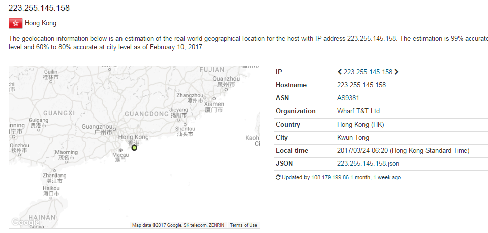 Figure 9: Attacking host in Hong Kong on the Wharf T&T network.