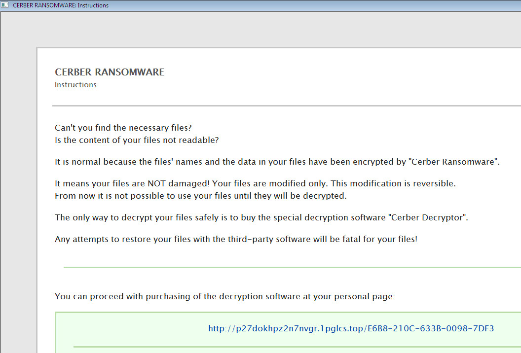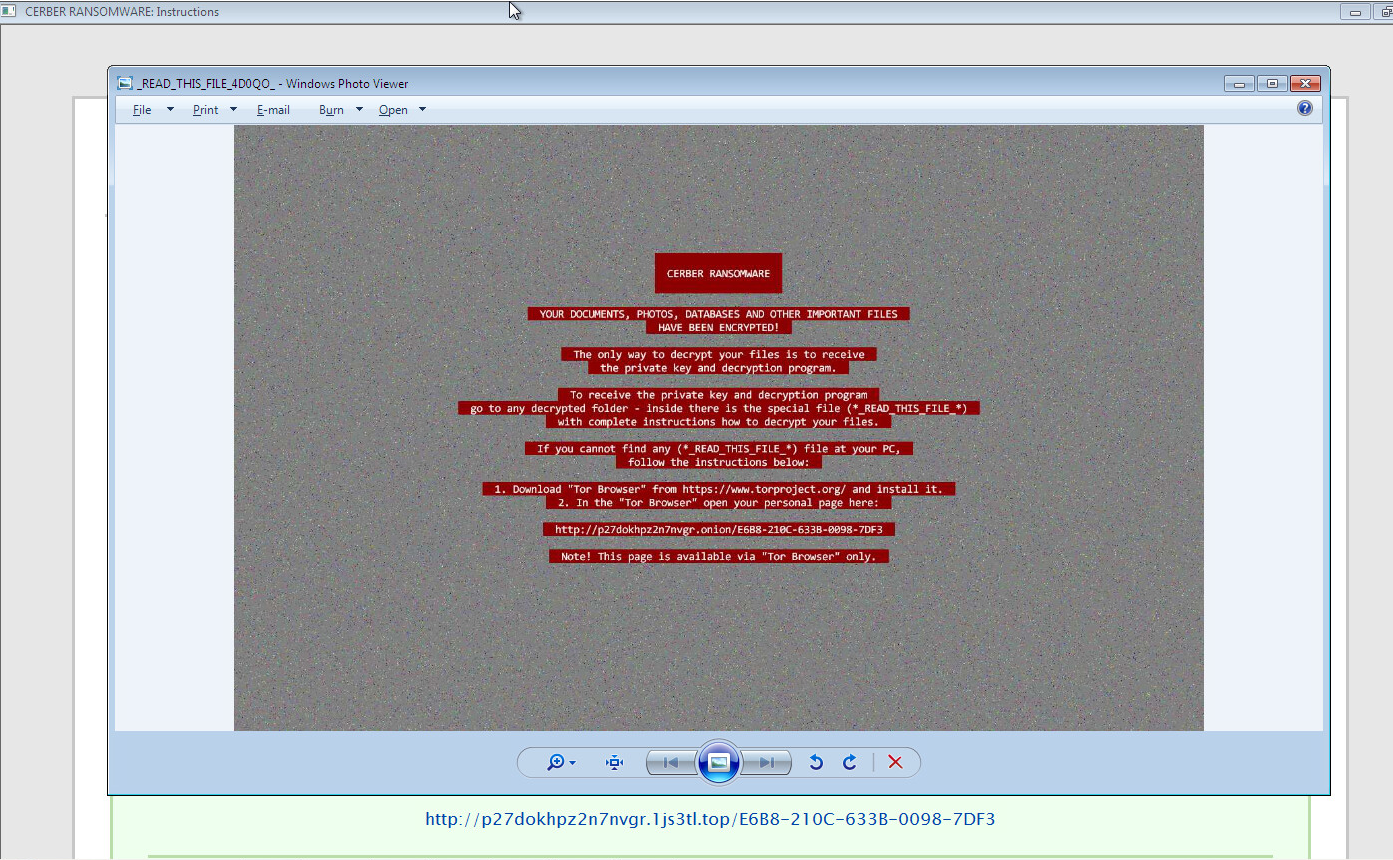 The same attacker (surprisingly using the same IP address) behind the previously described Apache STRUTS campaign varied the campaign again during the week of March 20th. This time, the payload infected Windows machines with the “Cerber” ransomware.