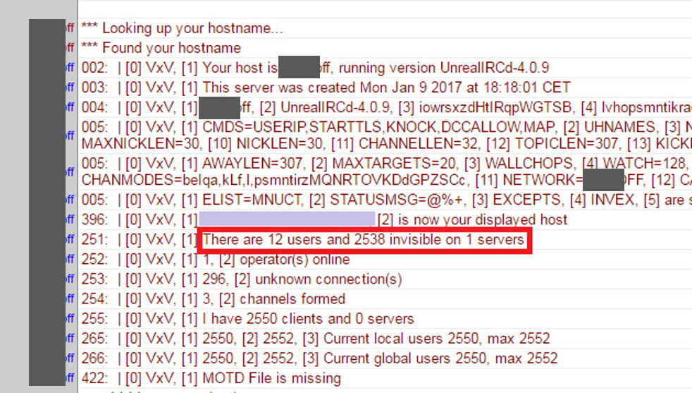 Figure 2: IRC channel consists more than 2,500 bots phoning home
