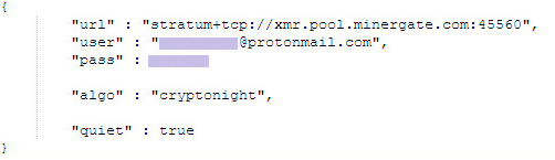 The bot will then mine coins into several legitimate crypto pools, as shown in the configuration file in Figure 6.