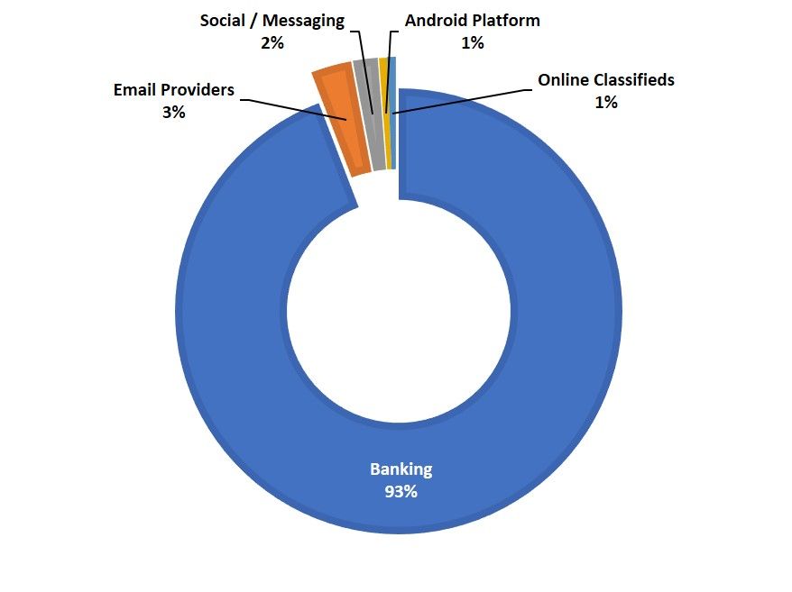 We detected 172 targeted domains in March 2017. As expected, the majority (93%) were banks. A smaller but interesting portion of the targets were email providers like Yahoo and Gmail, social network and messaging apps like Facebook, Viber, and WhatsApp, and Gumtree, an Australian online classified ad app.