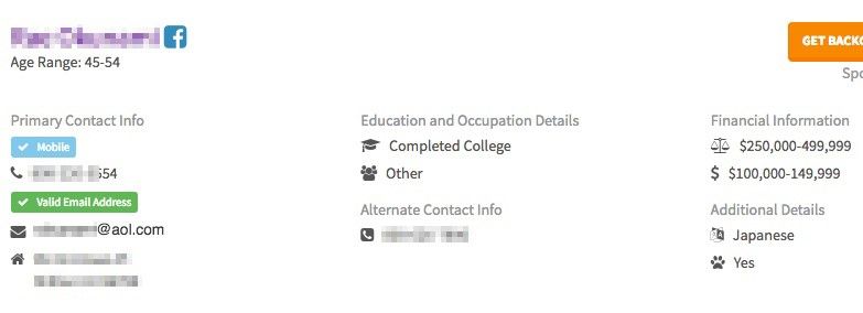 Note how this site provides Facebook information, email address, annual income, education, phone number, age range, and even racial profiling. Here’s some typical information you can get from these kinds of sites: