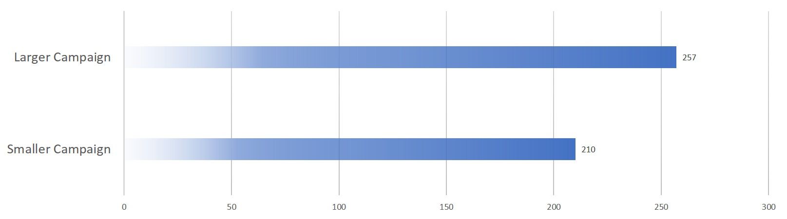 The chart below shows the same data as that shown in Figure 4 for the larger campaign. (For details, see Appendix A.)