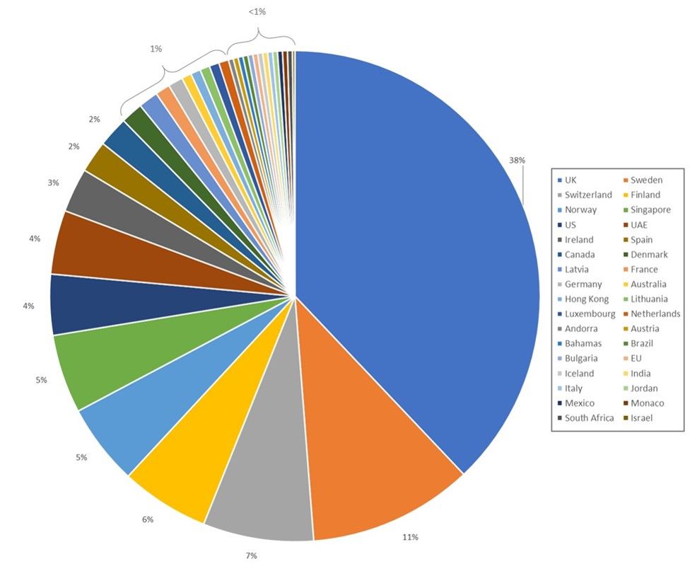 European banks were the focus of TrickBot’s targets in v24, comprising 81% of the URL targets. The primary targets were in the UK, Switzerland, and the Scandinavian countries of Sweden, Finland, and Norway; the UK and Sweden were collectively nearly 50% of the targets. Some of the banks targeted in those countries are foreign banks where the localized country domain was targeted, indicating the attackers are going after customers of those banks in those countries rather than targeting every country in which the bank operates.