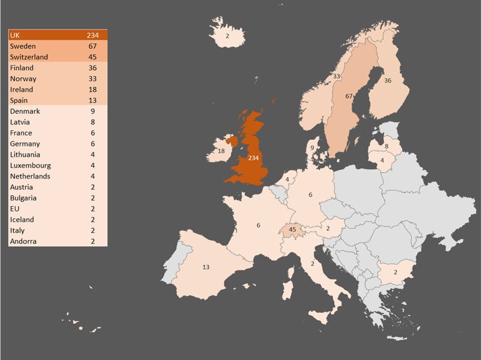 Figure 5: v24 European targets: URL count by country