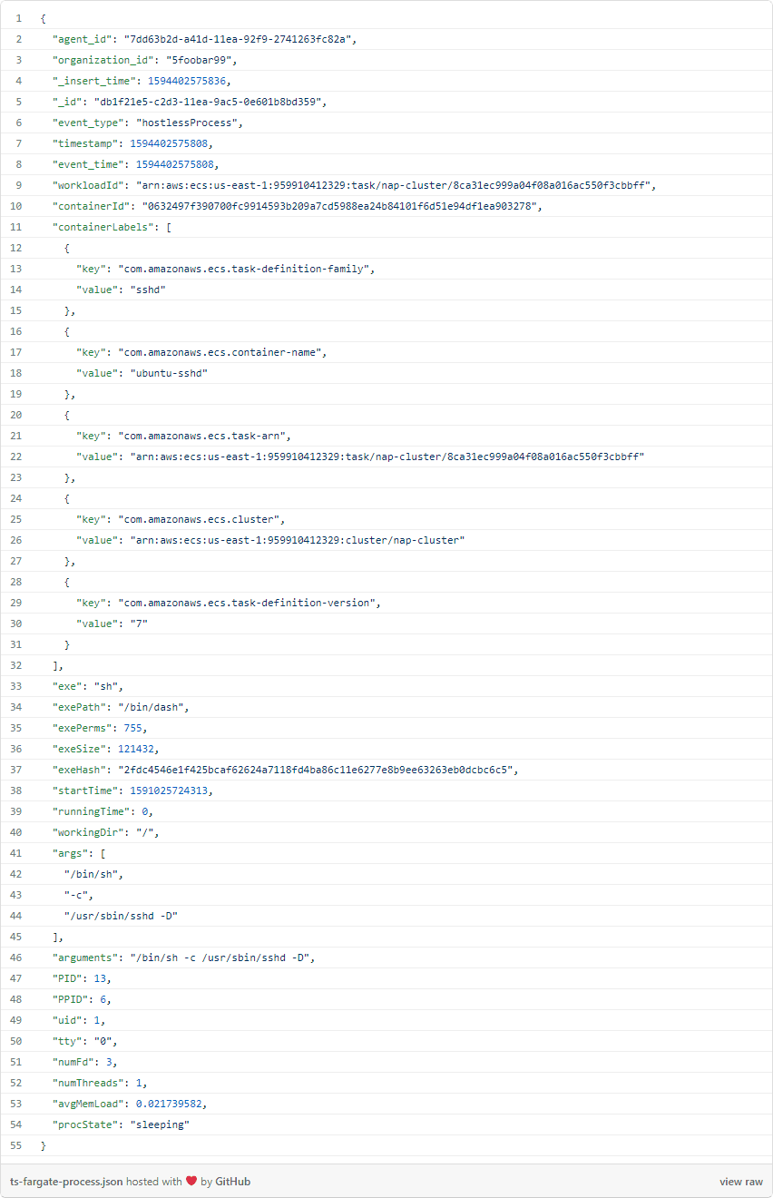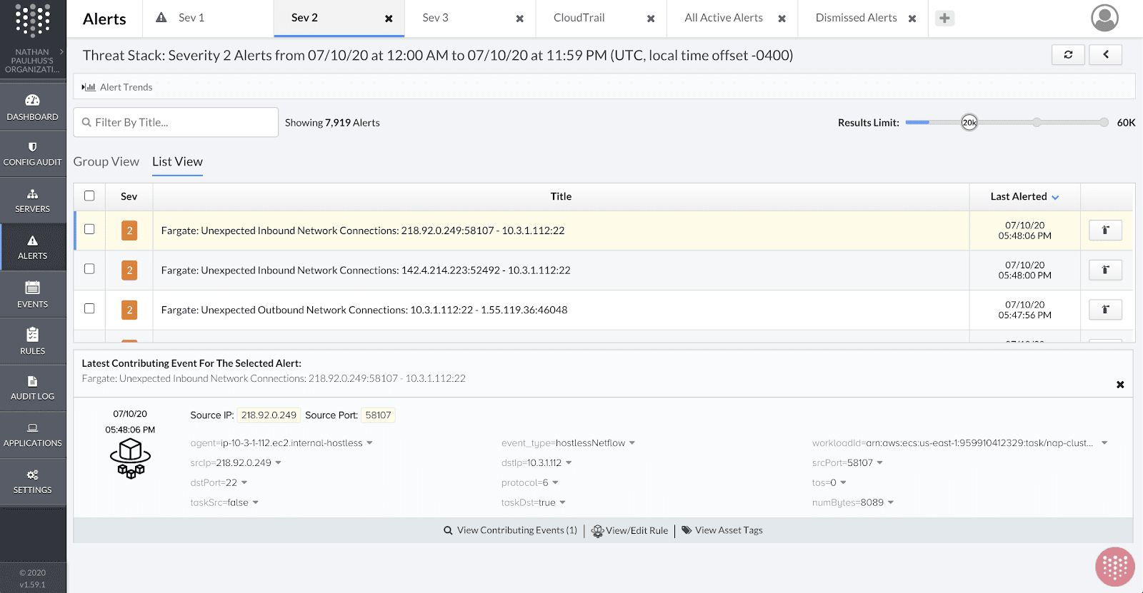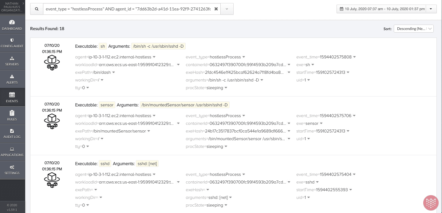 As a customer, the same basic mechanics of your Threat Stack workflows apply to AWS Fargate metadata for alert generation, rule customization, threat hunting, and more. Simply deploy the Agent, ensure network connectivity, and security data starts flowing into your Threat Stack platform.