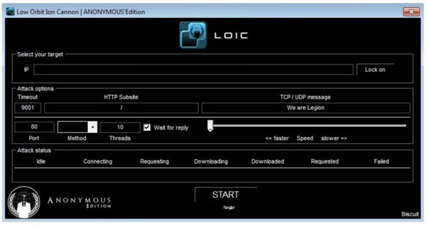 Tools based on Low Orbit Ion Cannon (LOIC), an open source network stress testing and DOS attack application written in C#, are prominent in this bundle: LOIC, JavaLOIC, LOIC-IFC, LOIC-SD and NewLOIC. LOIC was notoriously known as the main attack delivery tool used in several Anonymous operations such as Operation Payback, Project Chanology, and more. Being JAVA based, JavaLOIC is a cross-platform tool with a built-in proxy feature that enables an attacker to hide his or her own IP address.
