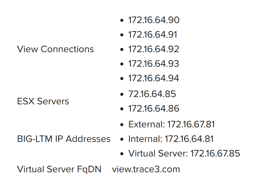 For this purpose, there were 2 VLANS configured-an internal-facing VLAN for network connections to the back-end View Connection Servers and an external-facing VLAN for client connections. Two self-IP addresses were configured and assigned to each VLAN. While this demonstration environment used the default certificates, for a full production deployment of VMware View on FlexPod, procurement of an SSL certificate from a certificate authority is recommended.