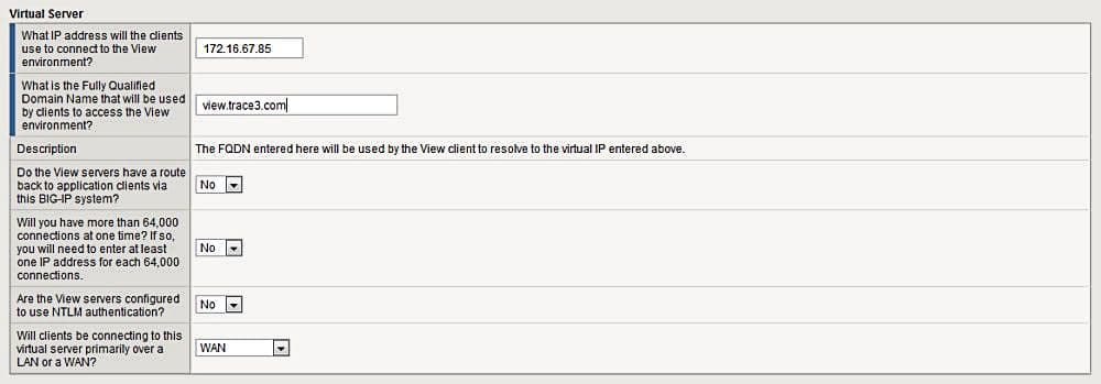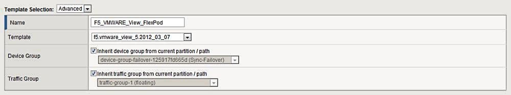 F5 iApps Templates further reduce deployment times. These menu driven, customizable, reusable, and application-specific templates enable administrators to deploy the necessary elements of an ADC solution without requiring expertise in the associated BIG-IP product modules. iApps Templates are reusable, and many existing iApps for specific needs are available for sharing via the F5 DevCentral development community. Administrators can also code and configure their own iApps for deployment of non-standard applications with F5 ADCs. The standard iApps Template was used to configure all the necessary components for the VMware View 5.0 environment.